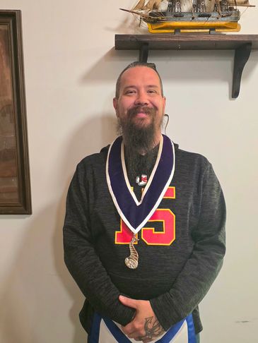His Jewel is the Square, which is a stonemason's tool to ascertain true and correct angles of the cut and smoothed stone...thus his Jewel symbolizes virtue. The Worshipful Master of a Masonic Lodge is the highest ranking of all Lodge Officers.